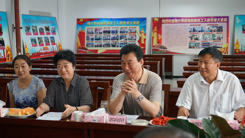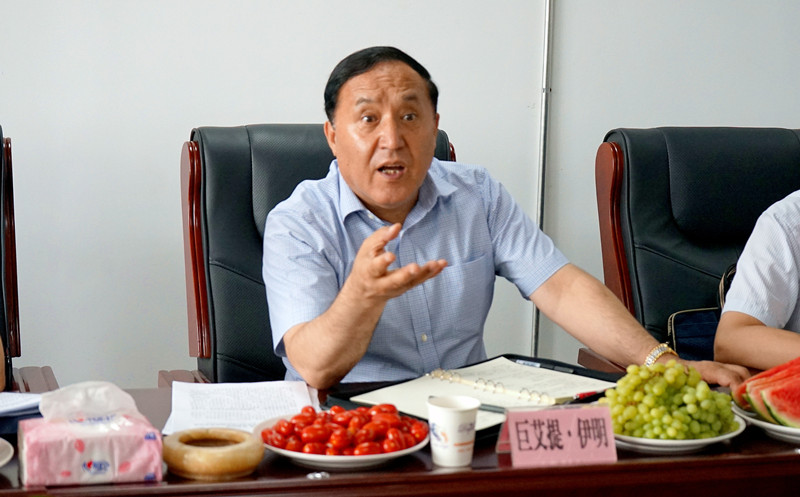 7月19日上午,自治区政协副主席、工商联主席巨艾提•伊明带领政协相关领导前往mg4355电子游戏线路检测进出口建材基地,就脱贫攻坚、安置转移就业劳动力等情况进行调研。