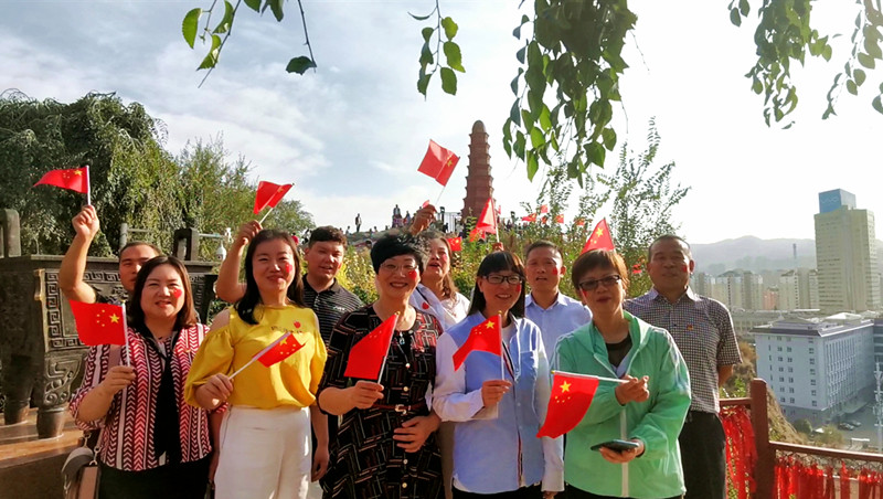 秋日余晖,明媚动人。红山公园在喜迎国庆70周年的精心装扮下显得格外美丽。机关党支部的全体党员干部怀着无比激动的心情走上红山,与国旗合影、共唱红歌。大家手挥五星红旗,用饱满的热情,嘹亮的歌声,歌颂祖国,唱出了对祖国的美好祝福。在观景台上,当乌鲁木齐现代化的城市美景展现在大家眼前,每个人的心中都为之骄傲。是祖国的日益强大和各族人民的团结一心、努力奋斗,才有了今天这般幸福、稳定的生活,才让这座城市散发出无限魅力。