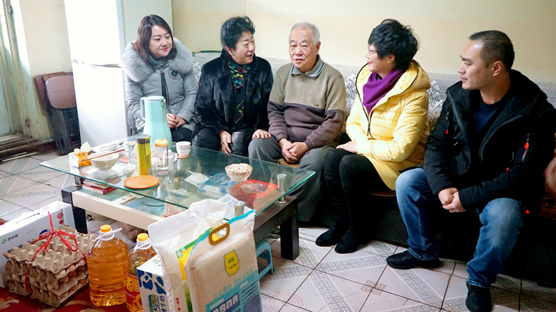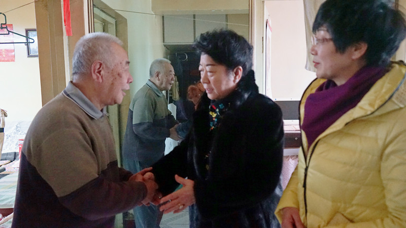 八钢三老人员魏玉环拉着李书记的手,激动地说:“感谢米总!感谢党和政府!这么多年你们每个节日都要来看望我,我现在生活也好了,身体也不错。一定帮我转告米总,希望他也保重身体,别太劳累。”