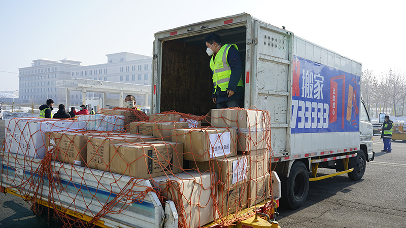 物资从机场运出正在装车运往疫情防控一线