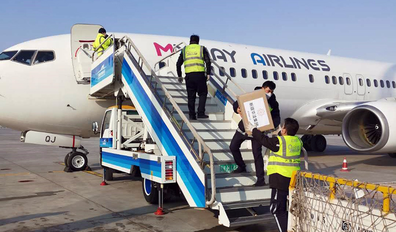 已装到飞机上的防控物资