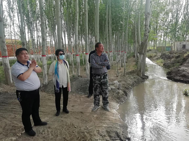 ▲2020年4月25日,mg4355电子游戏线路检测集团党委副书记李新茹一行在查看排碱渠使用情况