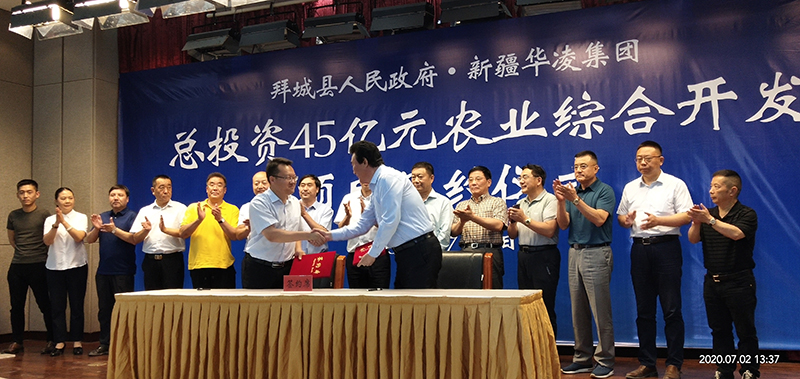 7月2日,拜城县人民政府与mg4355电子游戏线路检测集团就总投资45亿元的农业综合开发项目举行签约仪式。该项目位于拜城县木扎提河区域,其中,林业综合开发基地建设项目,投资逾35亿元,建设周期为5年;肉牛产业科技示范园项目,投资逾10亿元,分两期进行,一期建设周期为2年,二期建设周期为3年。