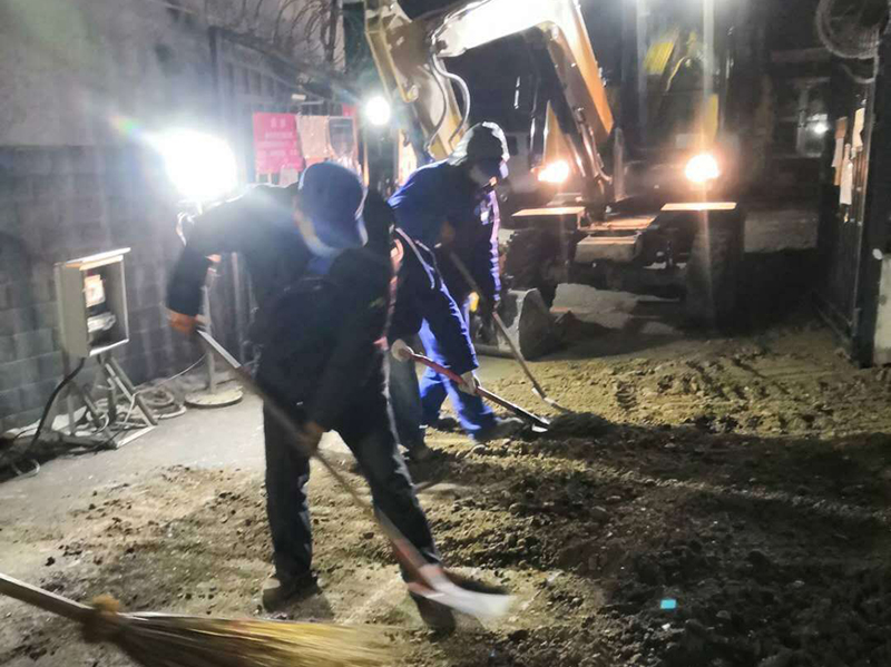 由于地下管线多,必须由人员下坑清土。党员干部、维修人员轮番下坑作业,汗水打湿的头发在严寒中又冻成了冰珠。午饭、晚饭所有人员均在现场轮流就餐,“人轮换、工不停”。最终历时17个小时,于224日凌晨3点,完成了抢修任务,并对事故现场进行了回填、清理,用实际行动注入了mg4355电子游戏线路检测的“温度”,在这场“大考”中展现出了民企的责任与担当。