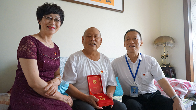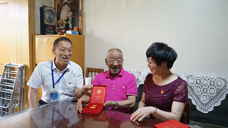 集团党办、工会、退管办负责人为老党员毕刚序颁发光荣在党50年纪念章