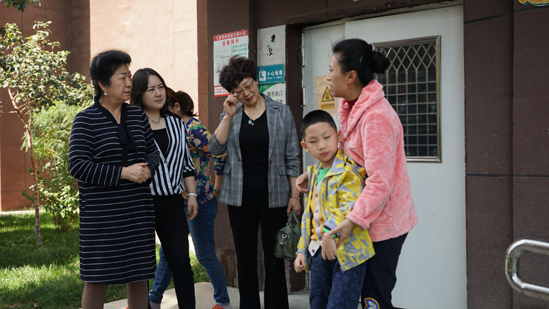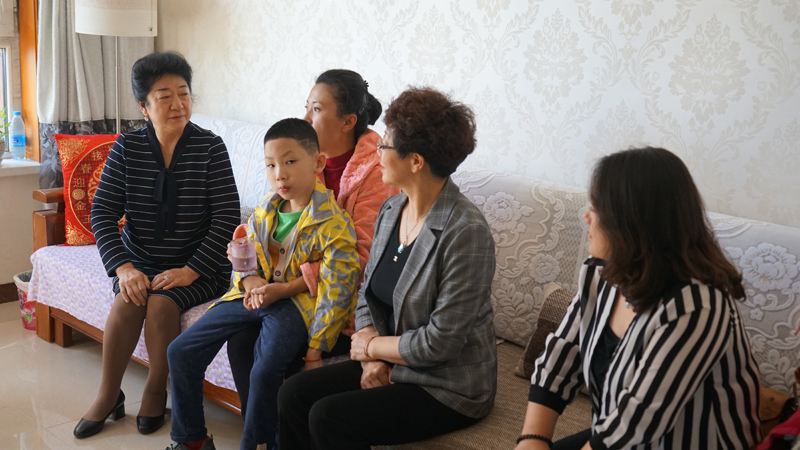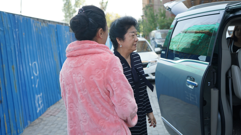 困难群众李莉因其母亲刚刚离世不久,一个人带孩子有些困难,近期一直生活在其姐姐家中,她的几个姐姐帮她照看。当我们到她姐姐家时,她已早早地等在楼前,她主动地为李书记打开车门,高兴地向李书记问好。