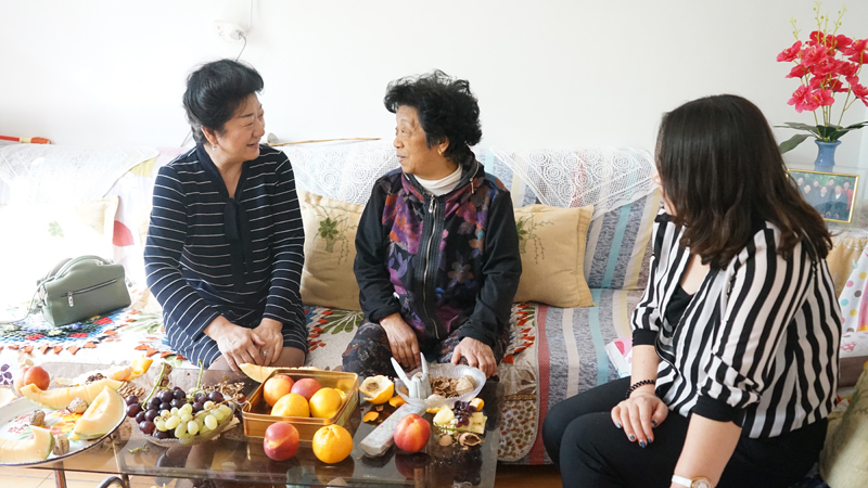下午,李书记来到位于八钢的魏玉环老人家中,老人身体和精神状态都很好,每次去看望老人她都特别高兴,她不停地给李书记等人递水果、剥核桃,就怕大家吃少了。